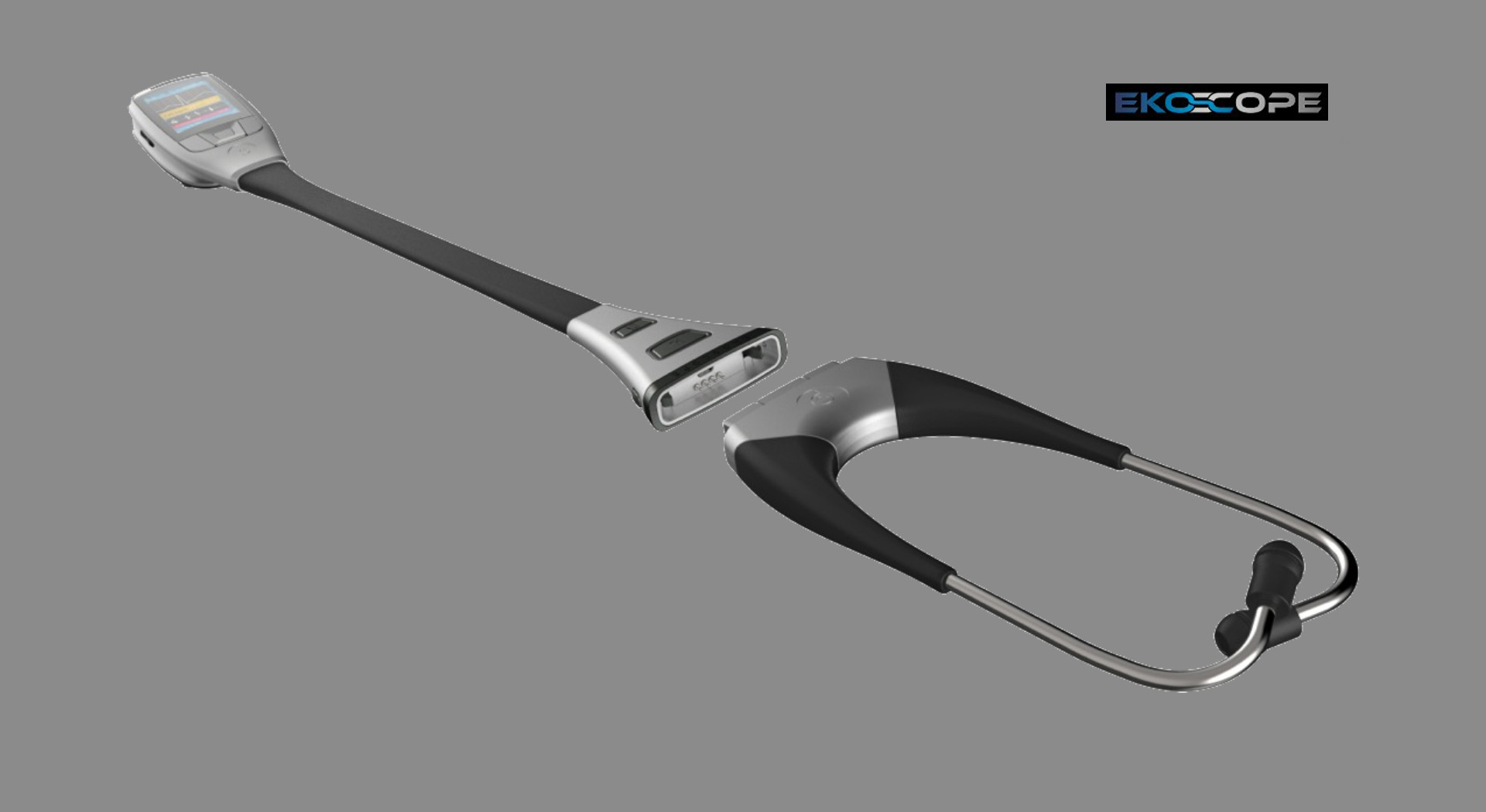 A futuristic portable physical assessment tool that is unlike anything before it, which is part smartphone with a vivid color touchscreen display, which seamlessly integrates with the DNA of an electronic stethoscope and ECG machine.